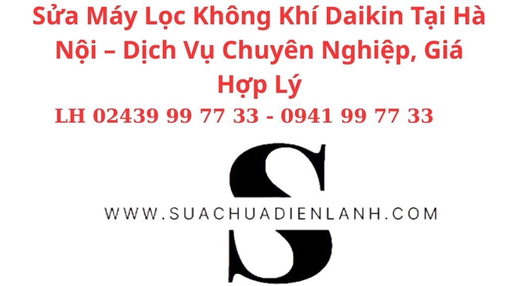 Dịch vụ sửa máy lọc không khí Daikin tại Hà Nội nhanh chóng, uy tín, có mặt tận nơi. Suachuadienlanh.com cam kết linh kiện chính hãng, giá minh bạch. Liên hệ ngay 02439 99 77 33 – 0941 99 77 33 để sửa chữa tại tất cả quận, phường Hà Nội.